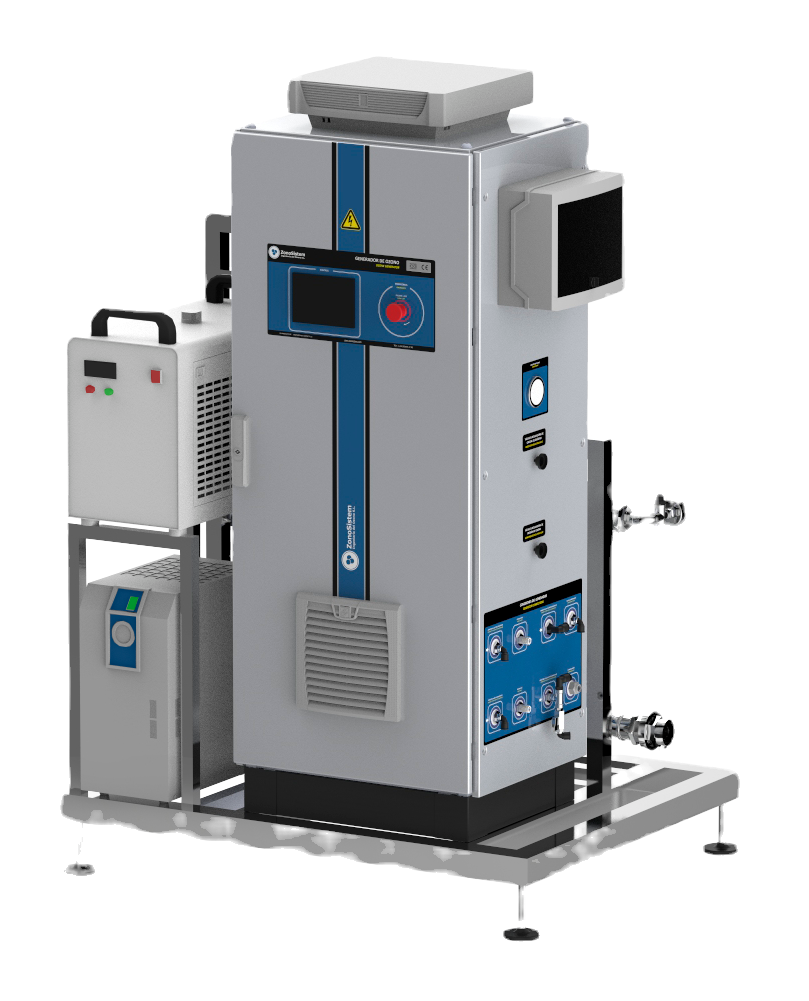 Esta planta de ozonización para tratamiento de agua permite mantener la cantidad deseada de ozono en un depósito de agua, de forma homogénea, constante y automatizada. La planta incluye todo lo necesario para operar de forma autónoma. Solo se necesita una fuente de energía y conexión a la línea de agua para tratarse. El equipo incluye un generador industrial de ozono de alto rendimiento, con concentrador de osígeno, que funciona a una concentración de ozono de 148g/Nm3, proporcionando una alta eficiencia en la dilución y oxidación de contaminantes. La bomba de recirculación permite que el venturi aspire e inyecte ozono en el agua y lo homogeneice en el tanque. El sistema incluye un PLC con control avanzado, con autoajuste automático de la potencia, que mantiene constantemente el nivel deseado de ozono.